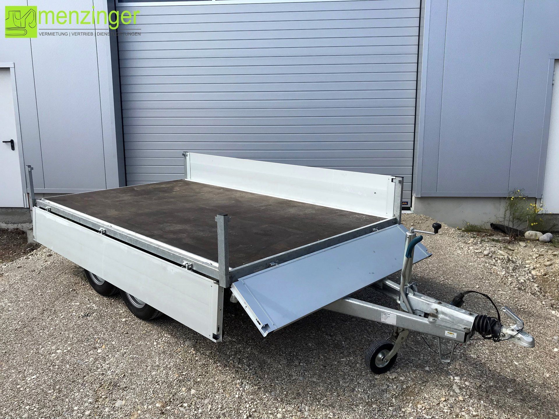 Auch zum optimalen Beladen mit einem Gabelstapler, lassen sich die Bordwände rundherum umlegen. Im Ladeboden sind ausreichend Zurrösen verbaut, um die Ladung ordentlich zu sichern. Unsere Anhänger sind sehr robust und werden ständig geprüft. Somit steht Ihnen und Ihrem Projekt auf der Baustelle nichts mehr im Wege. Neben Tandem-Anhängern und Dreiseitenkippern bietet die menzinger GmbH auch Transportmöglichkeiten mit einer Plane als Regenschutz